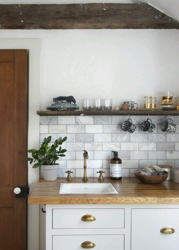 O velho escadote que serve para chegar aos armários de topo, é também ele um elemento de decoração.